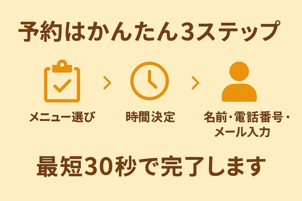お電話ではご希望の時間が合わない場合が大変ですので、こちらWeb予約が便利です。