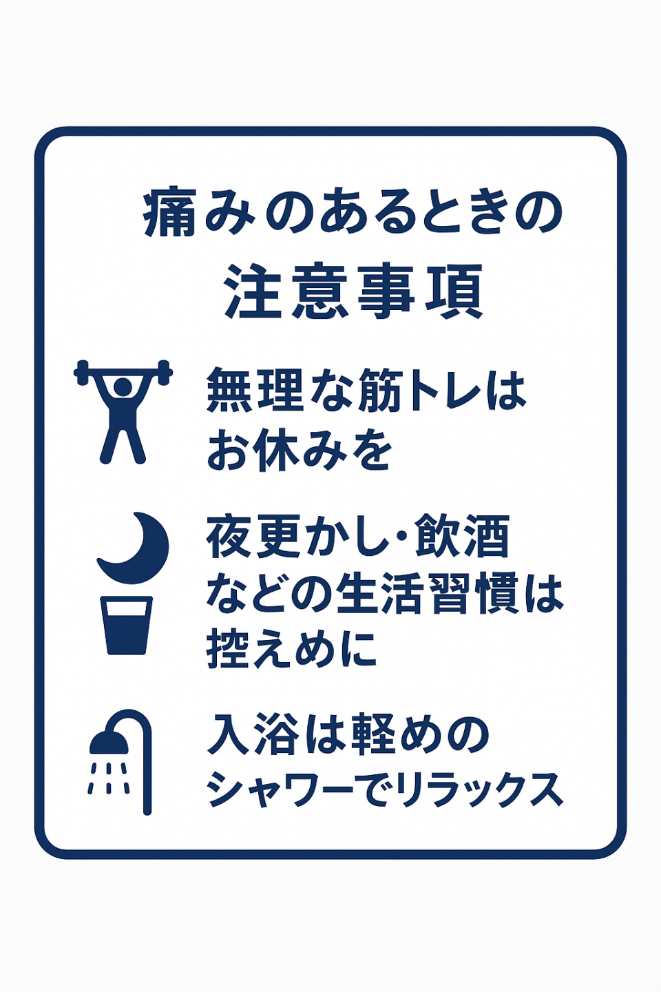 当院では、施術と並行して、日常生活での注意点や、ご自身でできるケア方法などもアドバイスさせていただきます。